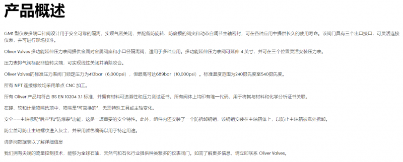 oilvervalves 多路延伸壓力表閥GM1-EXT系列