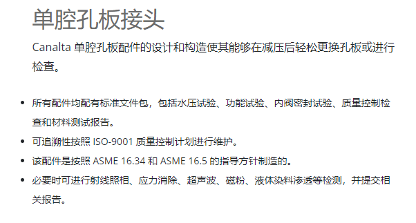 Canalta 單腔孔板接頭系列