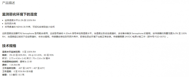 SENSAPHONE 室外濕度傳感器FGD-0052-OD