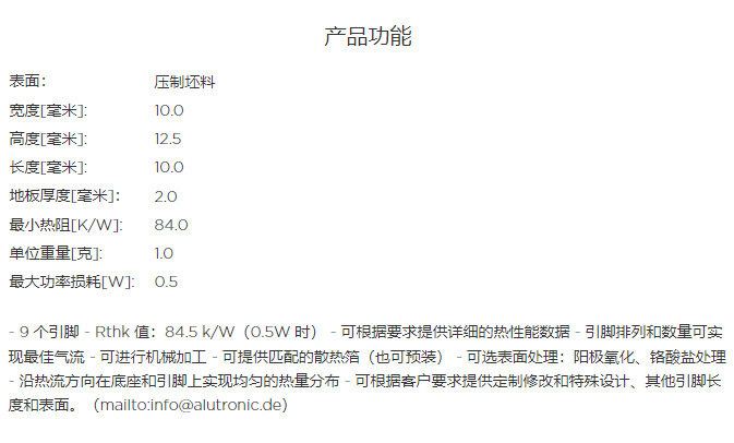 ALUTRONIC 針狀散熱器PO 10-10-12系列