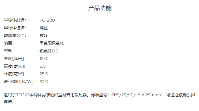 ALUTRONIC PCB安裝散熱器PR 5/25/SE系列