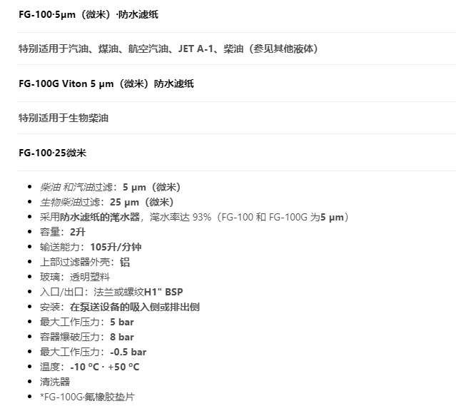 GESPASA 過濾器FG-100系列