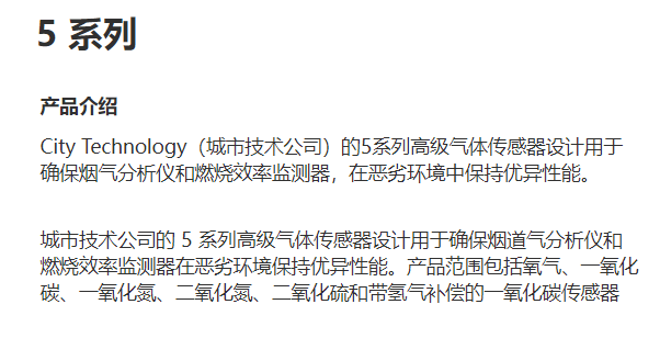 CITY Technology 氣體傳感器5 系列