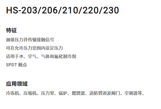 HYOSHIN 單高壓開關HS-203/206/210系列