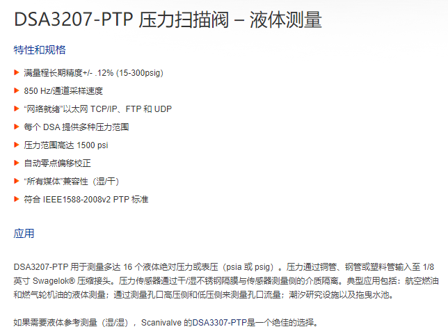 Scanivalve 壓力掃描閥DSA3207-PTP系列