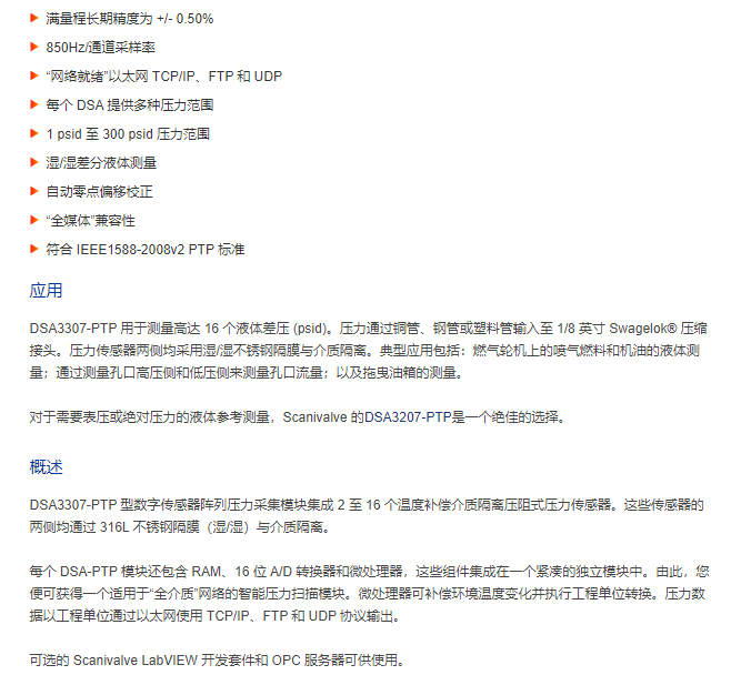 Scanivalve 壓力掃描儀DSA3307-PTP系列