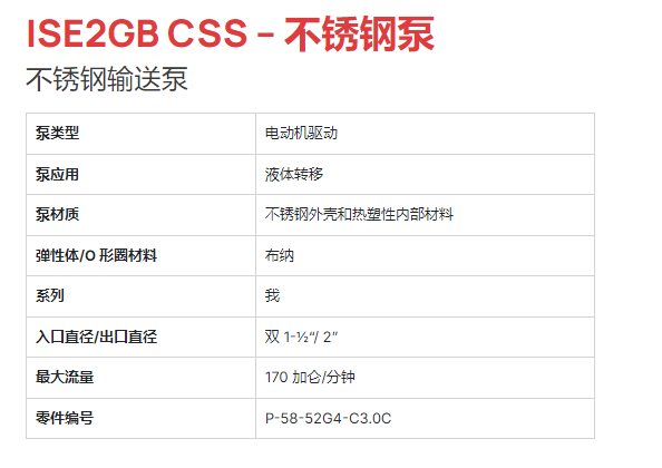 PACER 不銹鋼輸送泵ISE2GB CSS系列