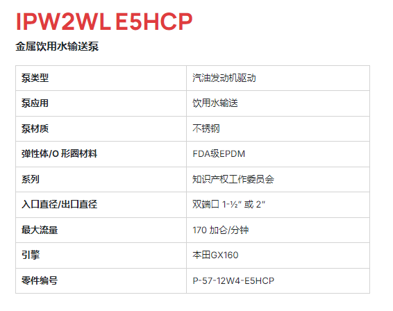 PACER 金屬飲用水輸送泵IPW2WL E5HCP系列