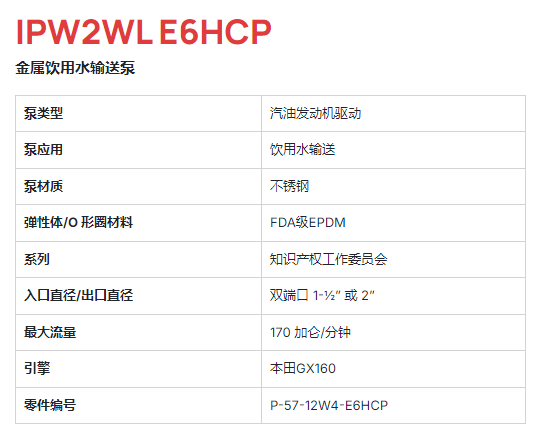 PACER 金屬飲用水輸送泵IPW2WL E6HCP系列