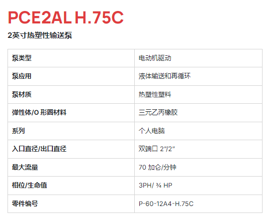 PACER 熱塑性輸送泵PCE2AL H.75C系列