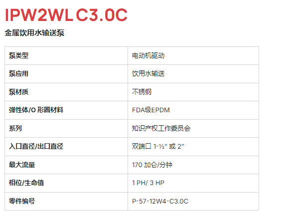PACER 金屬飲用水輸送泵IPW2WL C3.0C系列