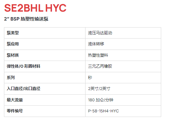 PACER 熱塑性輸送泵SE2BHL HYC系列