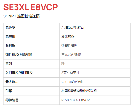PACER 熱塑性輸送泵SE3XL E8VCP系列