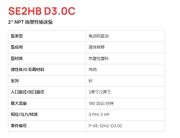 PACER 熱塑性輸送泵SE2HB D3.0C系列
