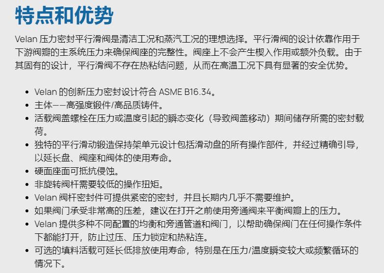 VELAN 壓力密封平行滑動(dòng)閘閥系列