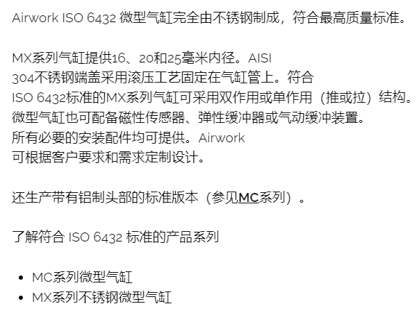 AIRWORK 不銹鋼氣缸ISO 6432 MX系列