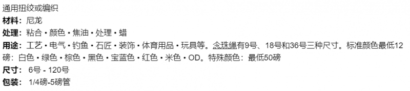 CONSOLIDATED 尼龍纜繩/圍網(wǎng)繩BTNY-006
