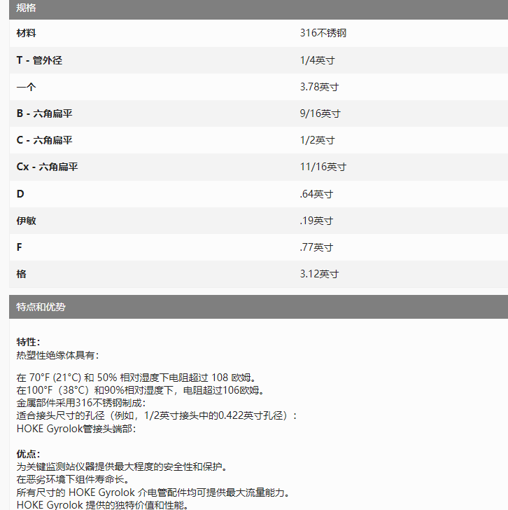 HOKE 介電接頭4DU-316系列