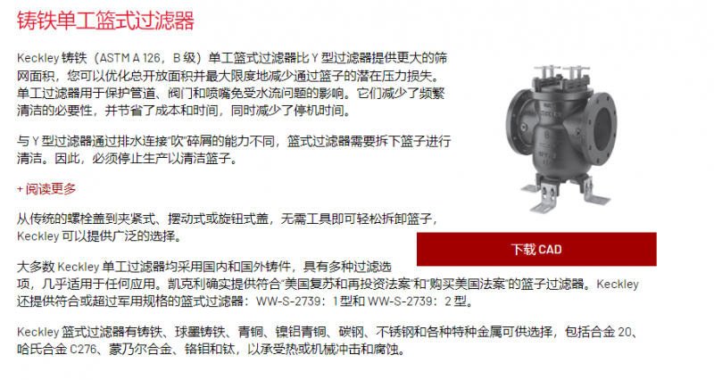 KECKLEY 鑄鐵單工籃式過(guò)濾器系列