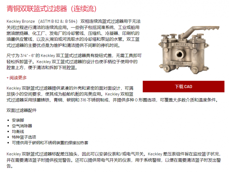 KECKLEY 青銅雙聯籃式過濾器(連續流)系列