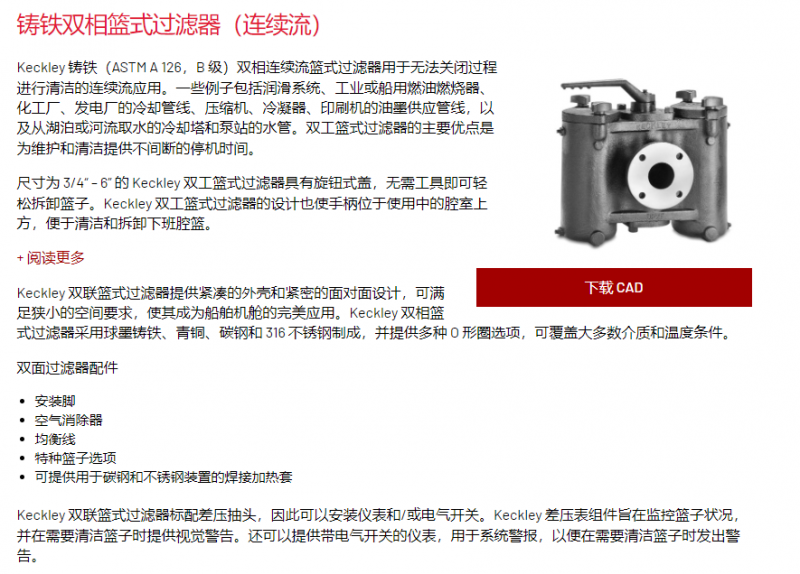 KECKLEY 鑄鐵雙相籃式過濾器(連續流)系列