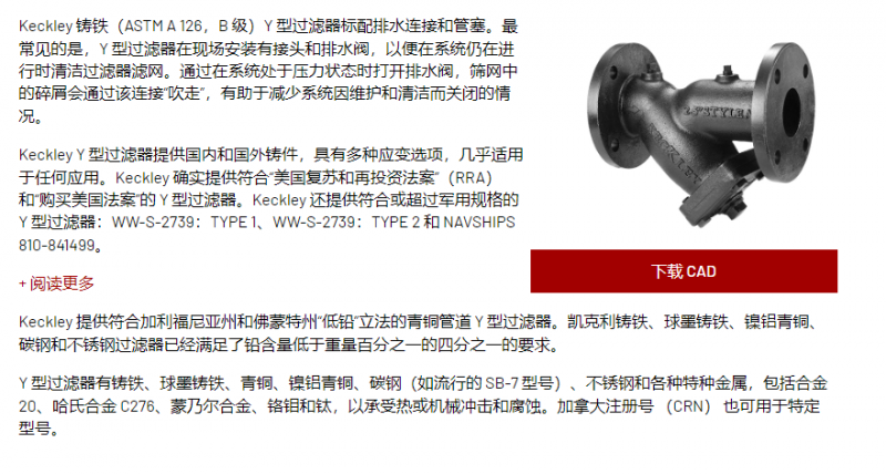 KECKLEY 管道鑄鐵 Y (WYE) 過濾器系列