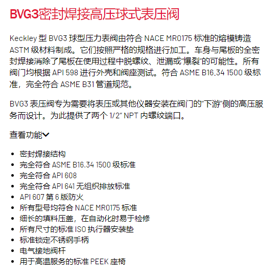 KECKLEY 密封焊接高壓球式表壓閥BVG3系列