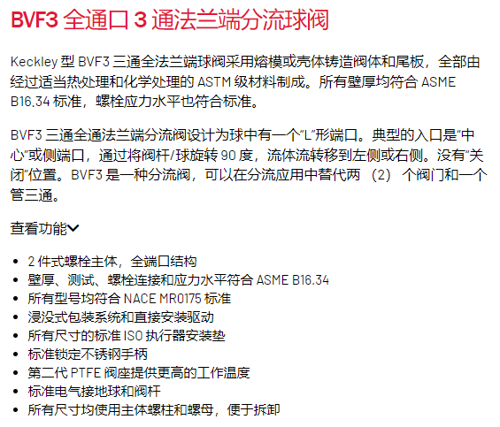 KECKLEY 全通口 3 通法蘭端分流球閥BVF3系列