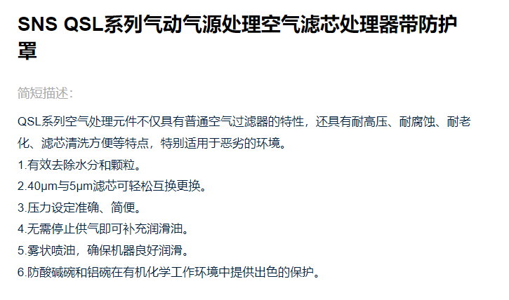 SNS 氣動氣源處理空氣濾芯處理器QSL系列