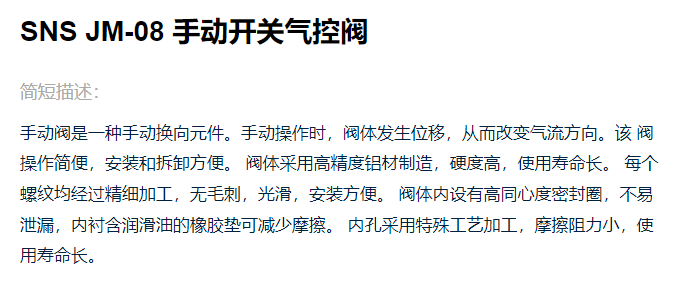 SNS 手動(dòng)開關(guān)氣控閥JM-08系列