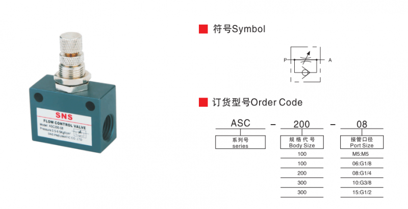 SNS 手動氣動單向流調(diào)速節(jié)流閥氣控閥ASC系列