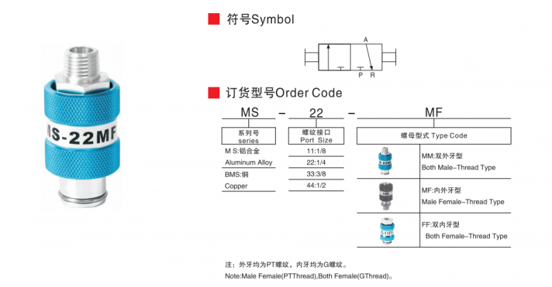 SNS 高品質氣動手動開關控制機械閥MS系列