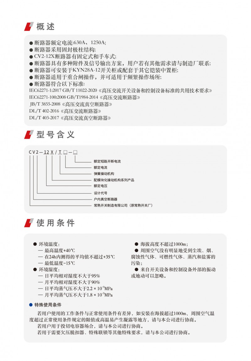 RIYUE 戶內高壓真空斷路器CV2-12X系列