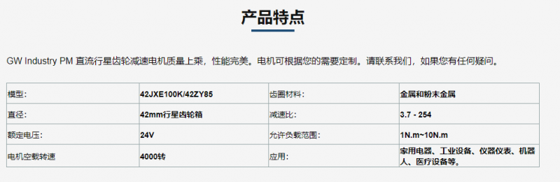 GW INDUSTRY 直流行星減速電機42JXE100K