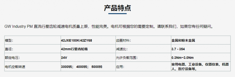 GW INDUSTRY 直流行星減速電機42ZY68系列