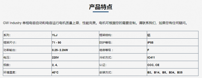 GW INDUSTRY 單相雙值電容異步電動機YLJ系列