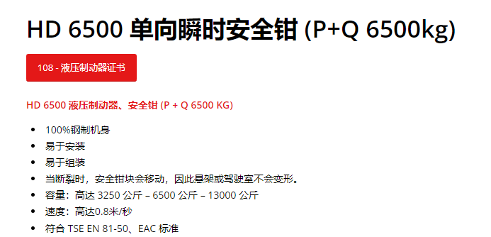 METROPLAST 單向瞬時安全鉗HD 6500系列