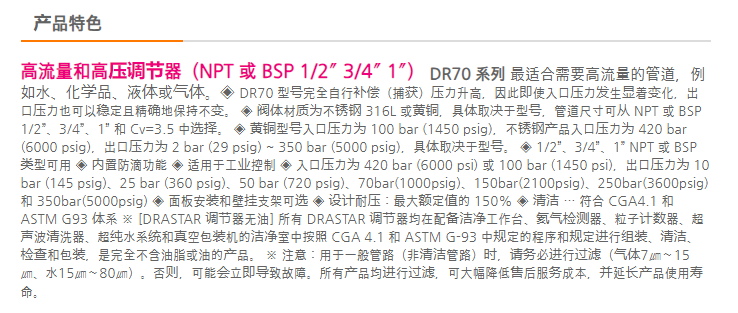 DRASTAR 高流量和高壓減壓調(diào)節(jié)器DR70系列