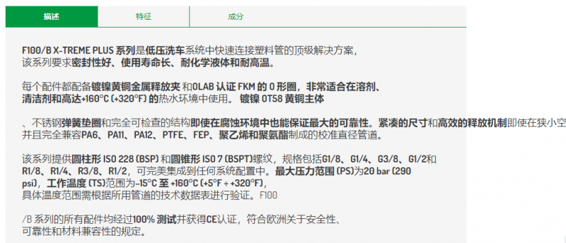 OLAB 快插接頭F100/B X-TREME PLUS系列