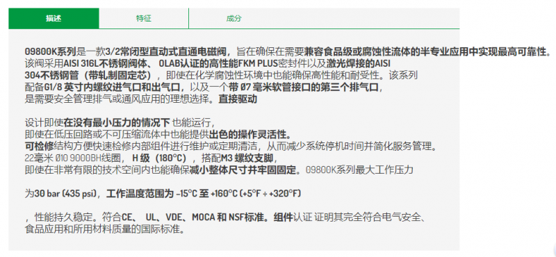 OLAB 直動式電磁閥09800K系列