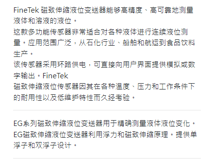 FineTek 磁致伸縮液位