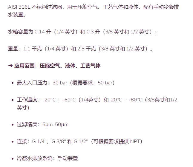 SENGA 壓縮空氣用不銹鋼過濾器AISI 316L系列