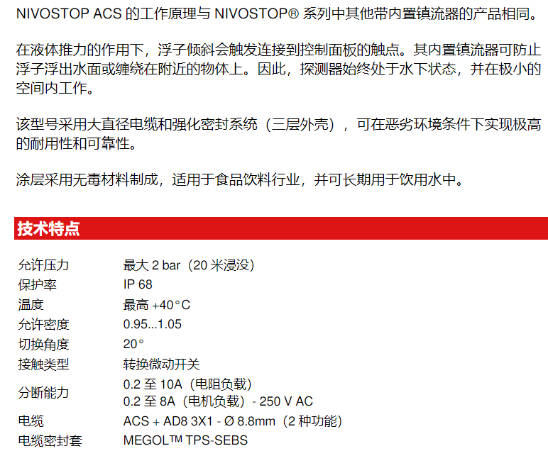BAMO ACS(飲用水)認證浮球液位開關系列