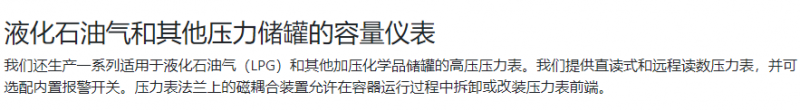Bayham 液化石油氣和其他壓力儲罐的容量儀表系列