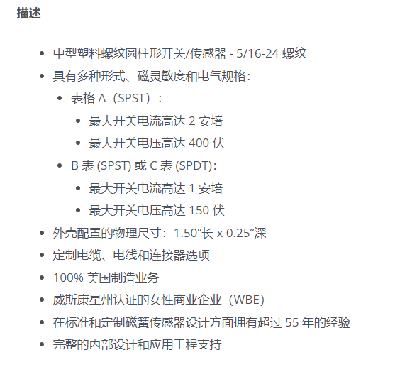 REED SWITCH 磁簧傳感器2250系列