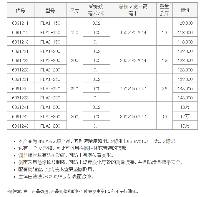 FSK 精密平面水平儀 JIS A-AA *系列