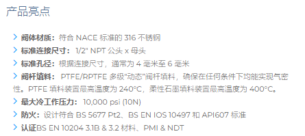 Budenberg 針閥 1/2 英寸10N8M8FS系列