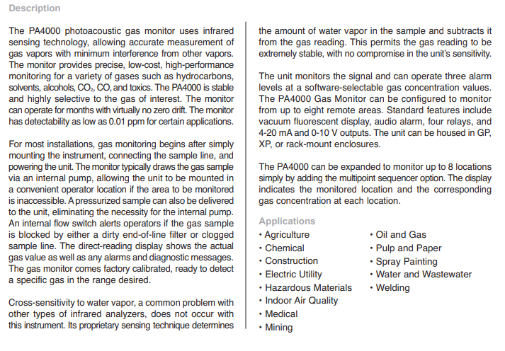 PCME 光聲紅外氣體檢測儀PA4000系列