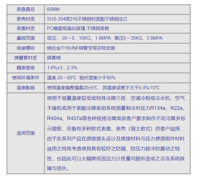 SHINKEG 不銹鋼充油冷媒表(徑向)系列