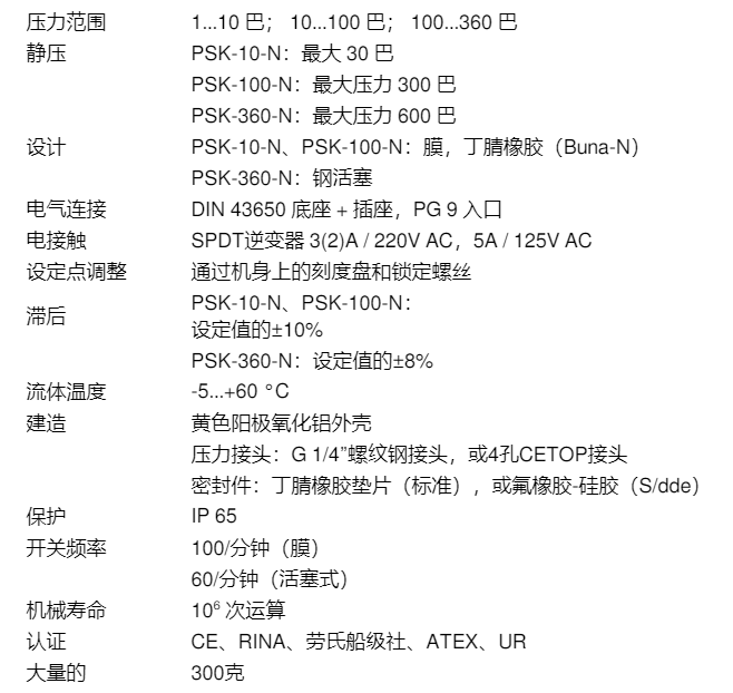 CITEC 通過刻度旋鈕調節壓力開關PSK系列
